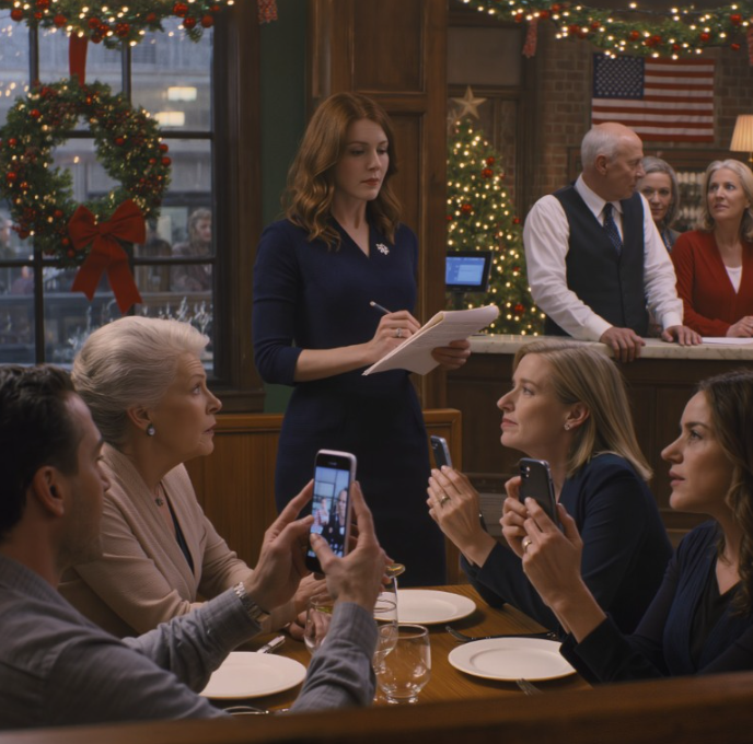 « Van de hele familie, » kondigde ze aan in het restaurant, alsof ze een dienblad met desserts presenteerde.