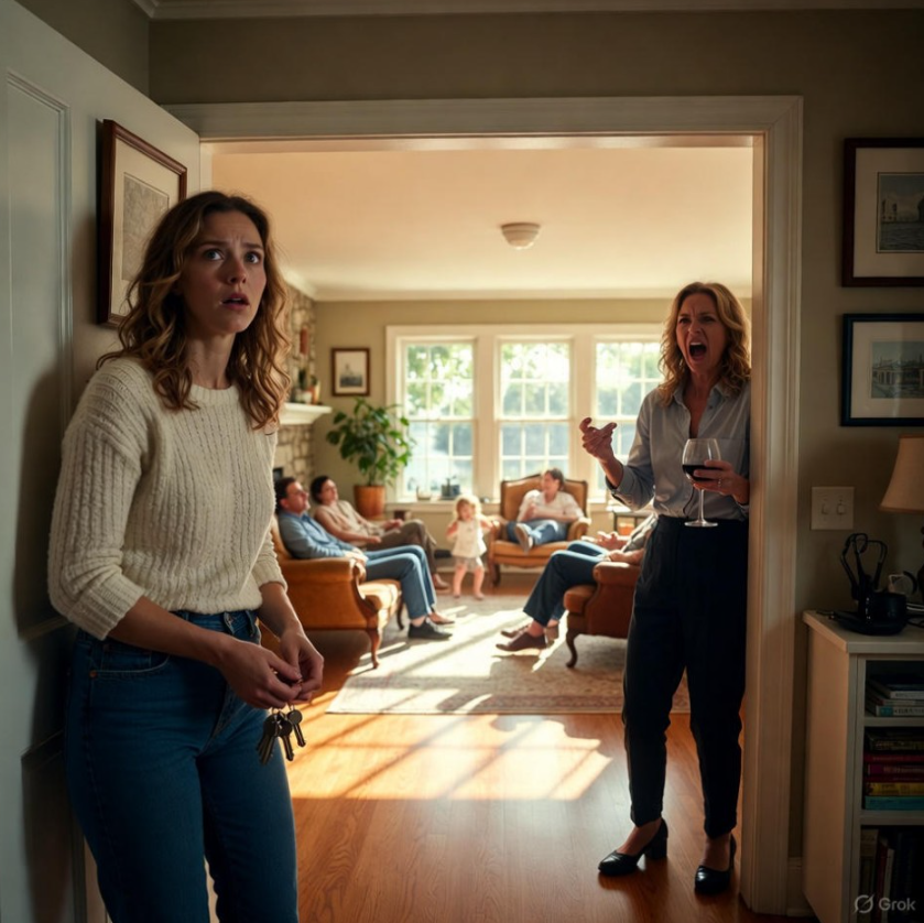 En toen zag ik haar. Vanessa, de vrouw van mijn broer van twee jaar, staand in de deuropening van de keuken, een glas wijn in haar hand. Toen ze me zag, werd haar gezicht vervormd.