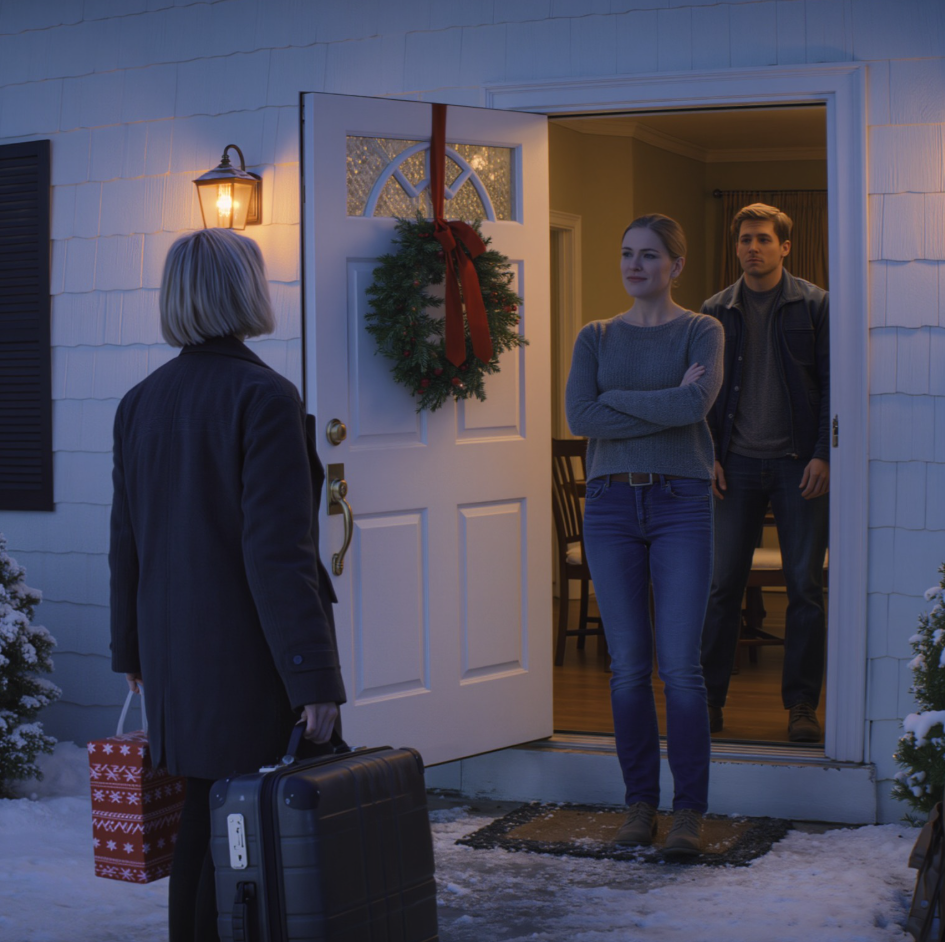 Ik was in mijn keuken, een kopje in mijn hand, en keek hoe de sneeuw tevergeefs probeerde aan het glas te blijven plakken. Mijn huis was bescheiden: twee slaapkamers, één badkamer. Een plek gekozen na het leven leerde me licht reizen. De koelkast spinde, de radiatoren sloegen zachtjes dicht. Bij het huis van de buurman leunde een opblaasbare kerstman gevaarlijk, alsof ook hij uitgeput was.