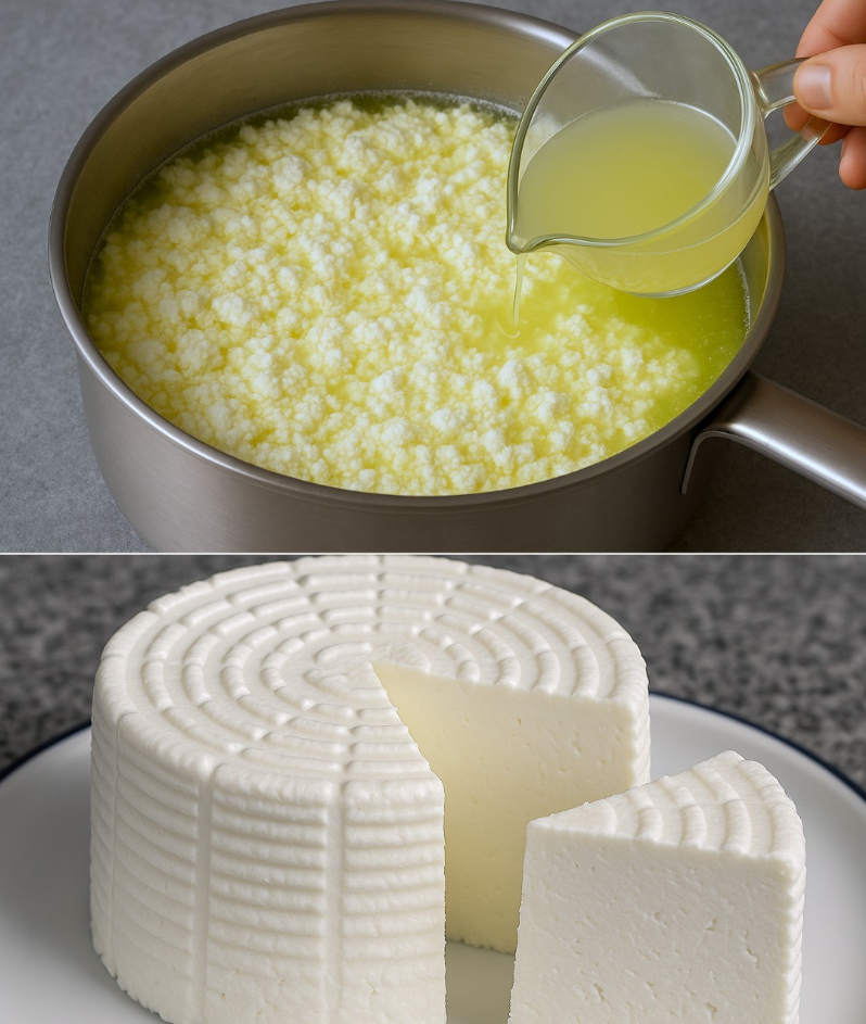 Enkele seconden later wordt de melk gekookt en ingetrokken om de grumos de queso (cuajada) te vormen die van de amarillento (suero) vloeistof is gescheiden.