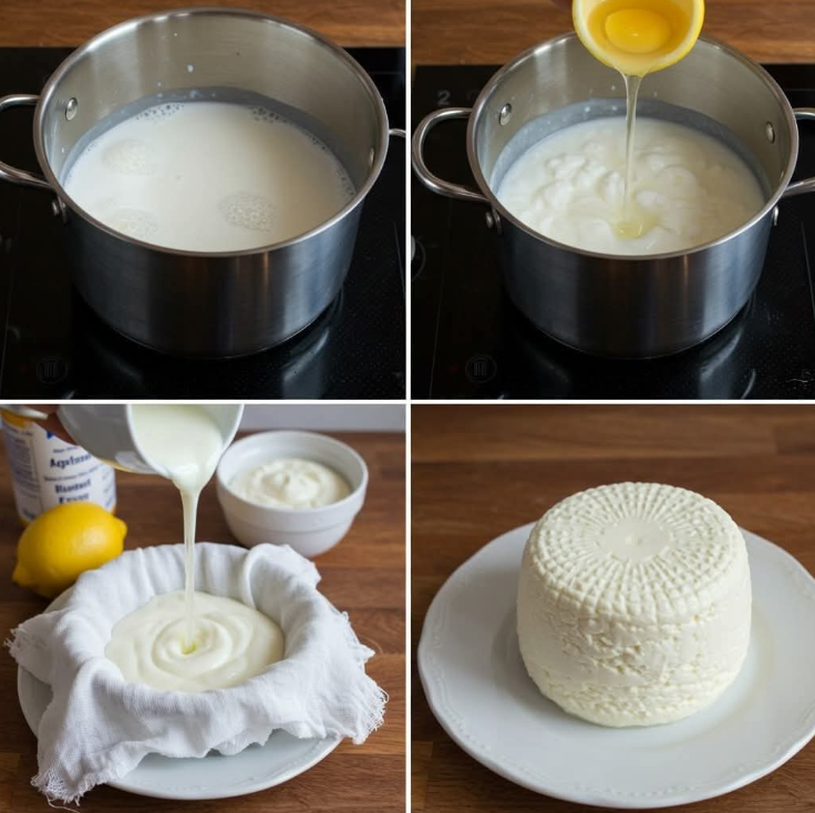 Zelfgemaakte kaas van melk, yoghurt en citroen (eenvoudig & puur)