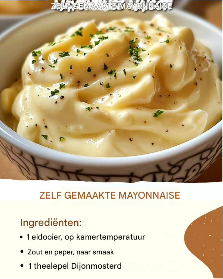 zodra de mayonaise begint te dikkeren, kun je de olie iets sneller toevoegen. Blijf krachtig kloppen totdat alle olie is toegevoegd en de mayonaise glad en dik is.