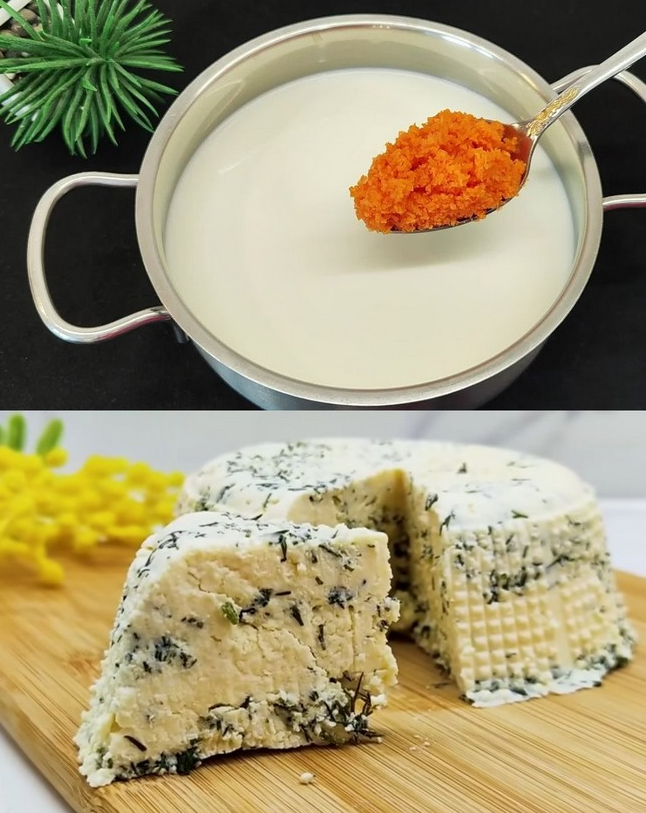 5. Als de melk begint te koken, voeg je het zure roommengsel en een eetlepel gehakte wortels toe.
