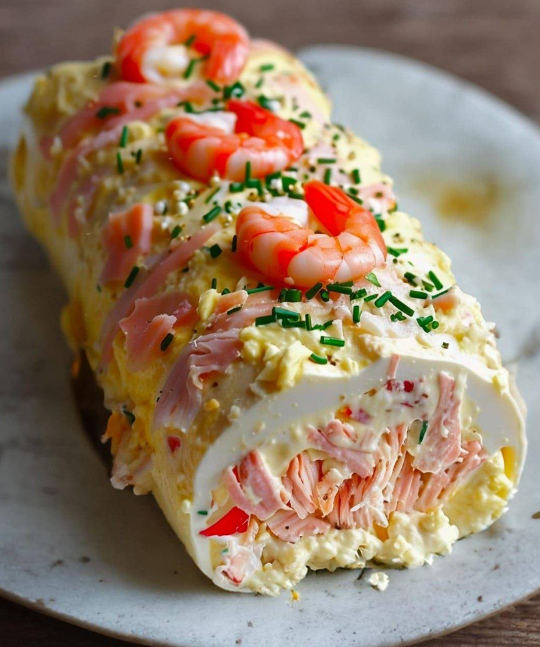 Zoute tronchetto met mariene smaken: krab, gerookte zalm en garnalen